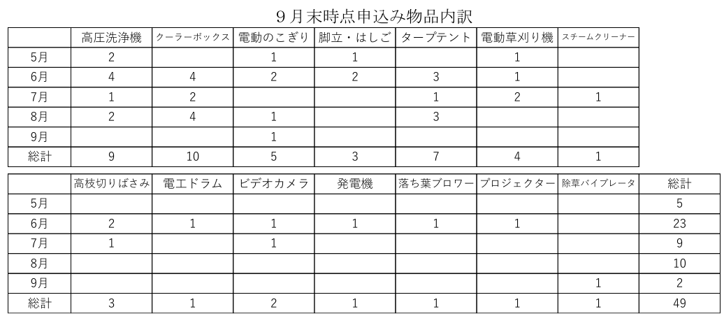 自治会保有物品レンタルについてもさっそく多くの自治会員の皆さまにご活用いただきご好 評をいただいております。